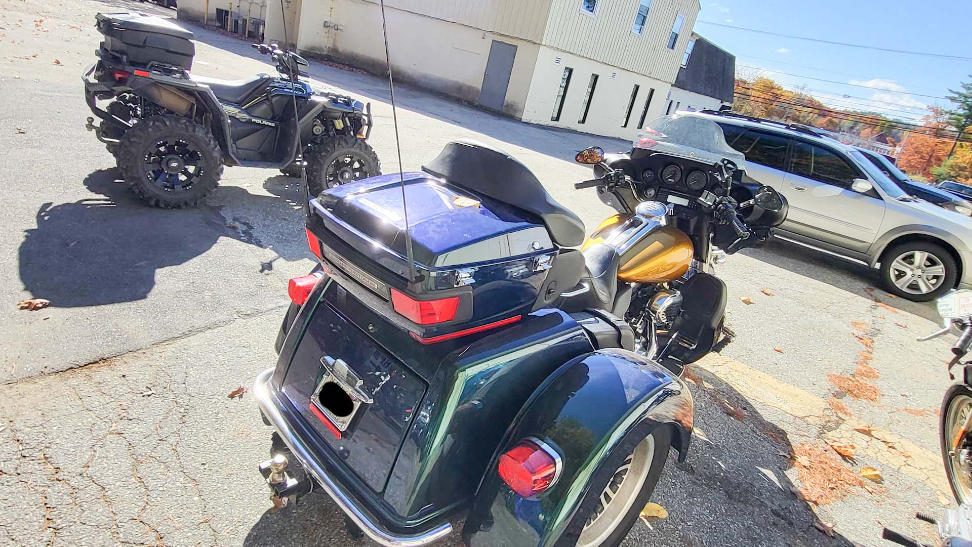 The 2011 FLHTCUTG is the 2011 Harley-Davidson Tri Glide Ultra Classic, a three-wheeled motorcycle featuring the air-cooled Twin Cam 103™ engine, a six-speed transmission, and electric reverse. Key features include ample storage with GTX hard saddlebags and a trunk, a multi-speaker audio system, and cruise control.