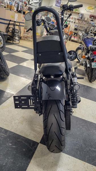 Split nine-spoke wheels that are black as night from rim to rubber to compliment the Dark Custom look.